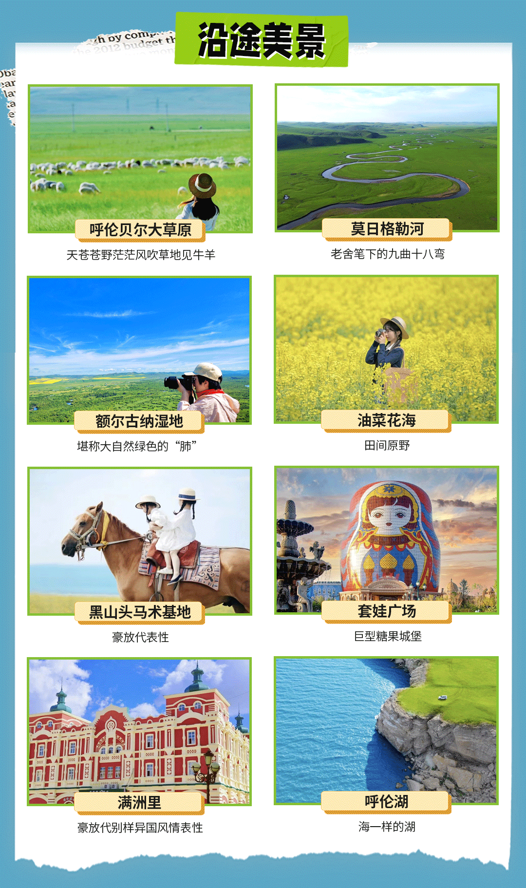 ?后一路草原景色前往海拉爾后自由活動(dòng),視時(shí)間返程,結(jié)束愉快的呼倫貝爾之旅!